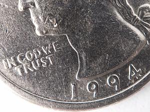 Macro lens used to capture this 1994 Quarter